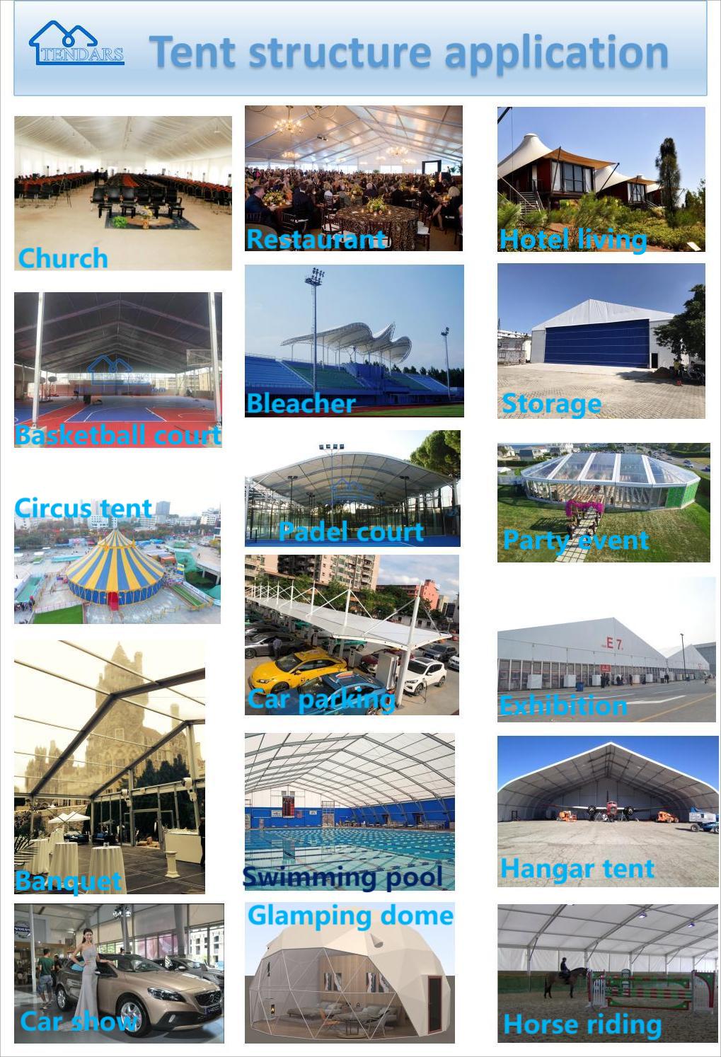 * Our tents can be assembled and dismantled and repeatedly with small transportation size.The lifespan of aluminium framework can reach 15-20 years,and 5-8 years for PVC fabrics depending on different conditions of usage.