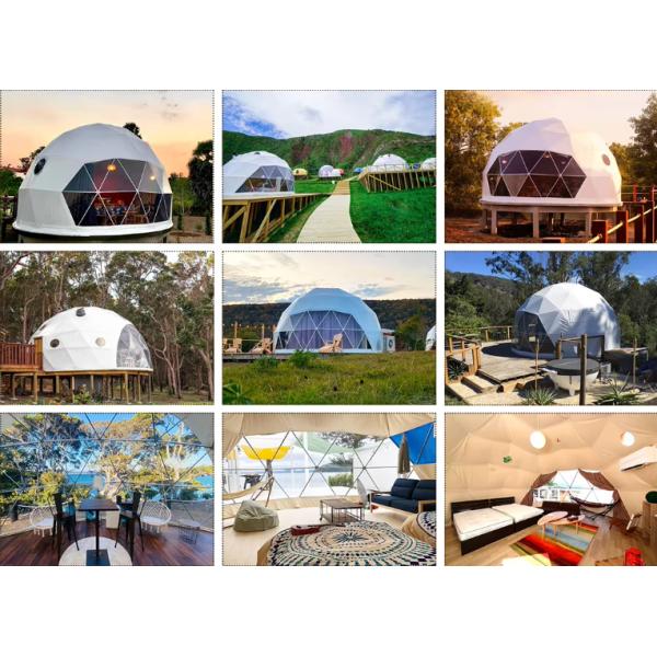 The dome tent is a customized product, the size can be from 4m diameter to 40m dia. The 6m dia is hot sale and the standard size for camping And the accessories are optional, such as Glass Door, Glass Window, Skylight, Ventilation window, Curtain, Solar Exhaust Fan, Insulation etc.