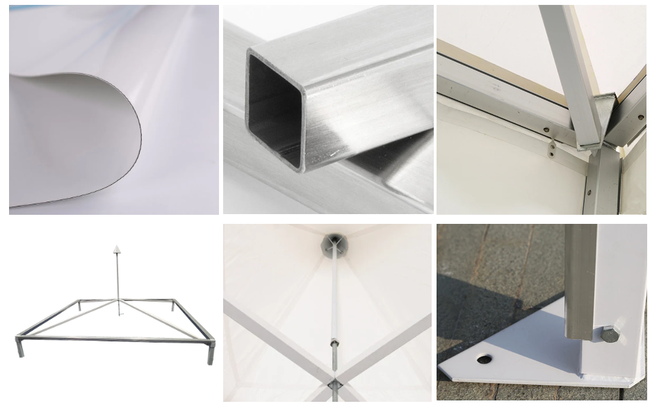 Packaging Details : 1, The aluminium frame structure packed into the bubble film 2, the pvc fabric roof cover and sidewalls are packed into the PVC fabric carry bag; 3, Hardware packed into the box.